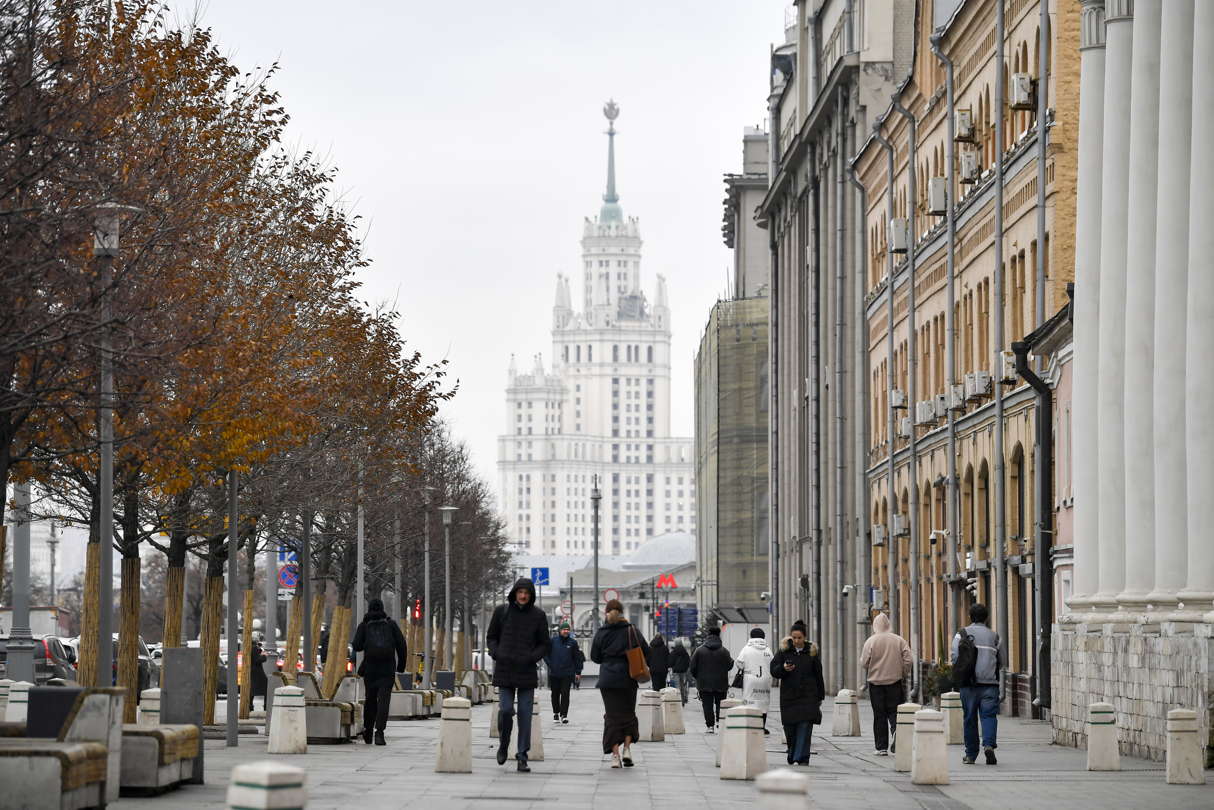 11月11日,行人走在俄罗斯首都莫斯科街头。新华社发(亚历山大摄)